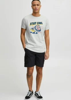 Indicode Jeans IDDANIEL – T-shirt Z Nadrukiem – Light Grey Mix | Męska Koszulka