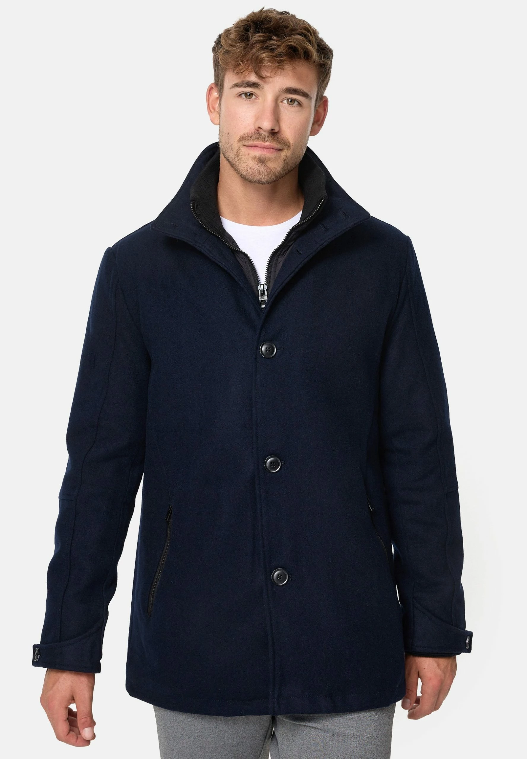 - Elegancka kurtka przejściowa MÄNTEL BRITTANY od Indicode Jeans w klasycznym kolorze Navy, idealna na każdą okazję.